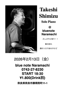 2/13金曜日18時半からブルーノートならまちでSoloやります。